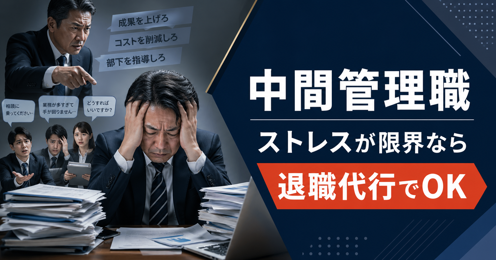 中間管理職のストレスが限界なら退職代行で辞めていい|板挟みから抜け出す4つの選択肢【2026年最新・弁護士監修】